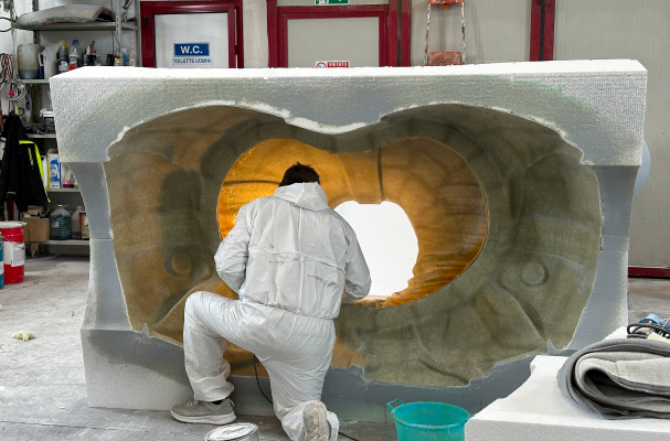 Modellazione stampi, fresatura, rivestimento in vetroresina, assemblaggio, verniciatura, logistica, supervisione installazione