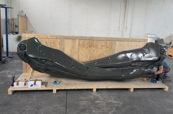 Successivamente, la statua è stata verniciata in grigio antracite e imballata in casse su misura, pronta per essere spedita via mare verso la sua destinazione finale: Ibiza.